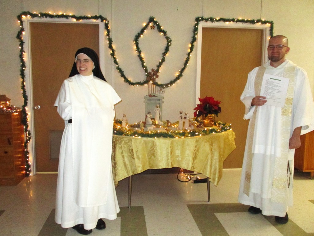 As is our tradition, on Christmas Eve our chaplain came in to the enclosure to bless the creches in the refectory and community room.