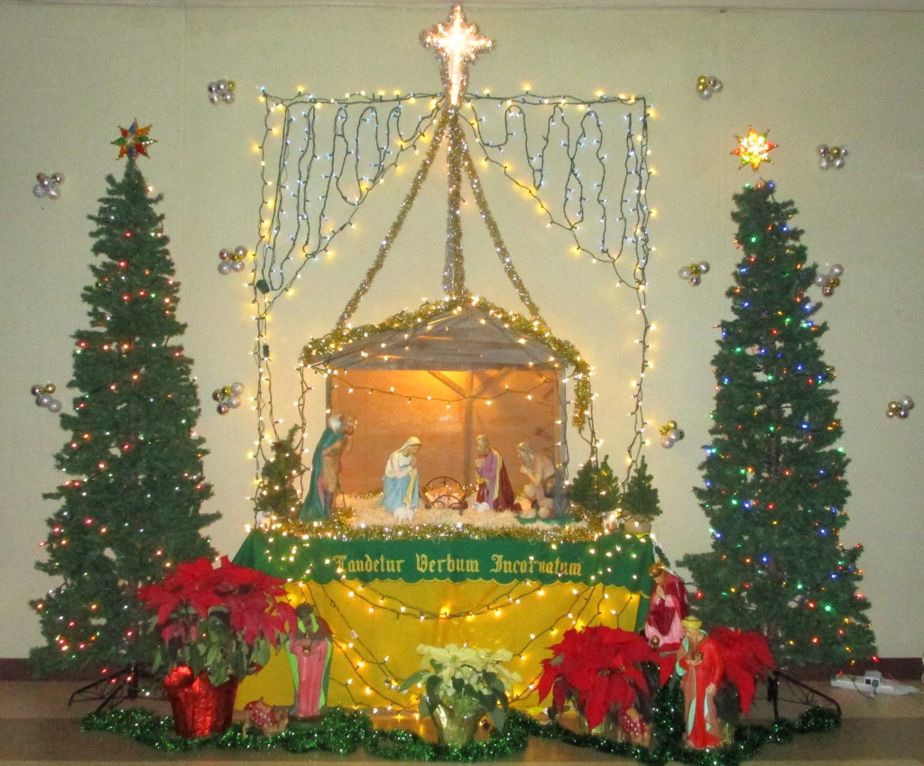 The refectory creche, decorated with a Dominican shield