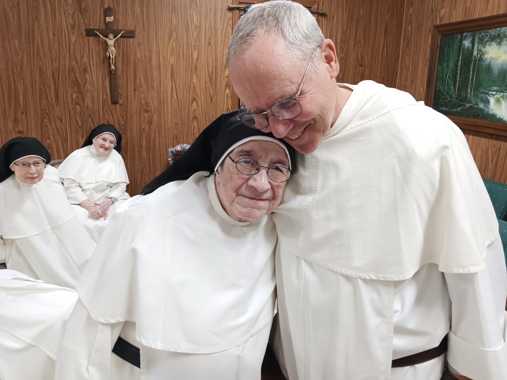 Fr. Brian Pierce hugs his spiritual mother, Sr. Maria Guadalupe