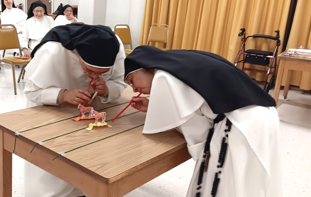 Sr. Mary Giuse and Sr. Mary Jeremiah each want their horse to win!