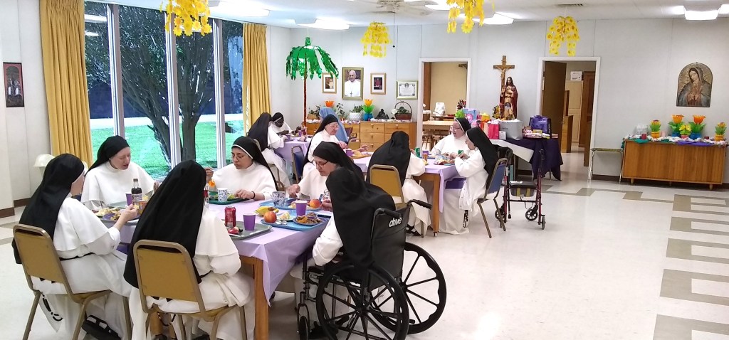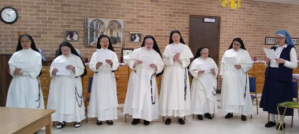 Sunday was the solemnity of the Ascension here in Texas…and it was also Mother’s Day! We had festive meals and games in the evening to celebrate these two events. We started with Mass of the Ascension in the morning, had a delicious meal in the community room for lunch, enjoyed some free time during the afternoon, sang Solemn Vespers of the Ascension, and had yummy sandwiches and chips for dinner. After that, we went back to the community room to play games!