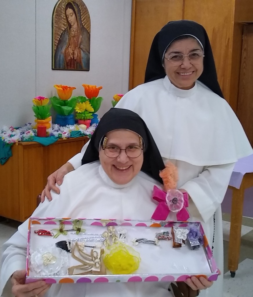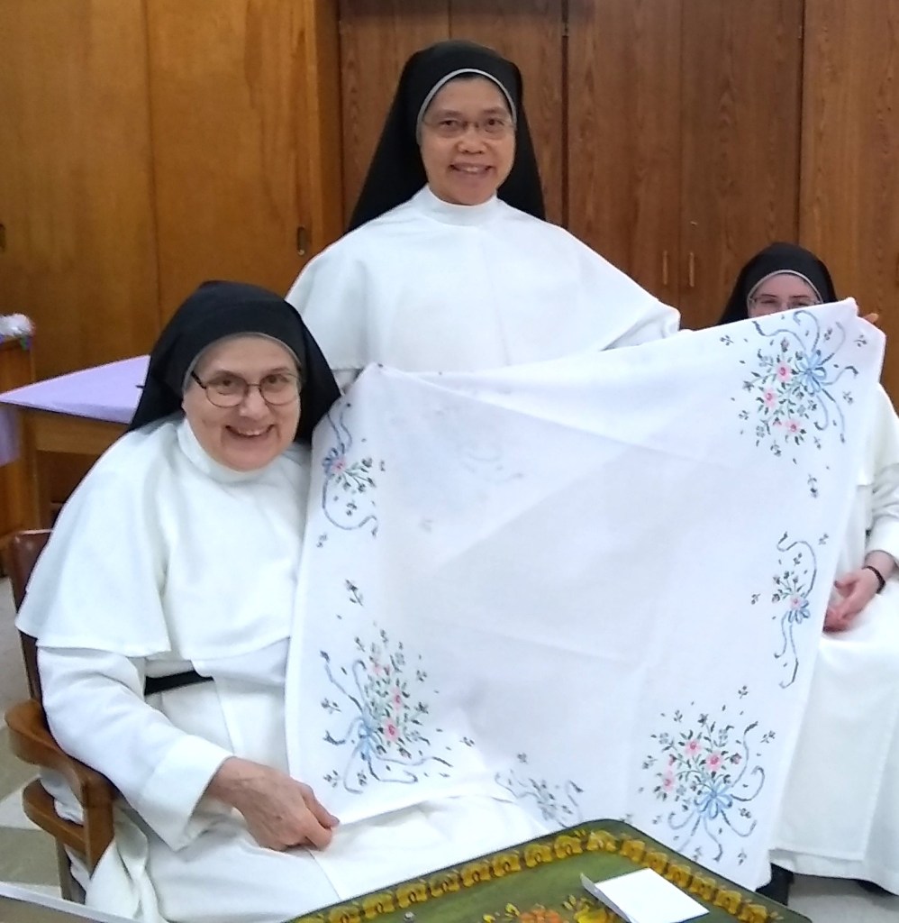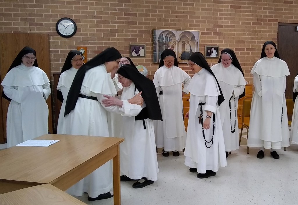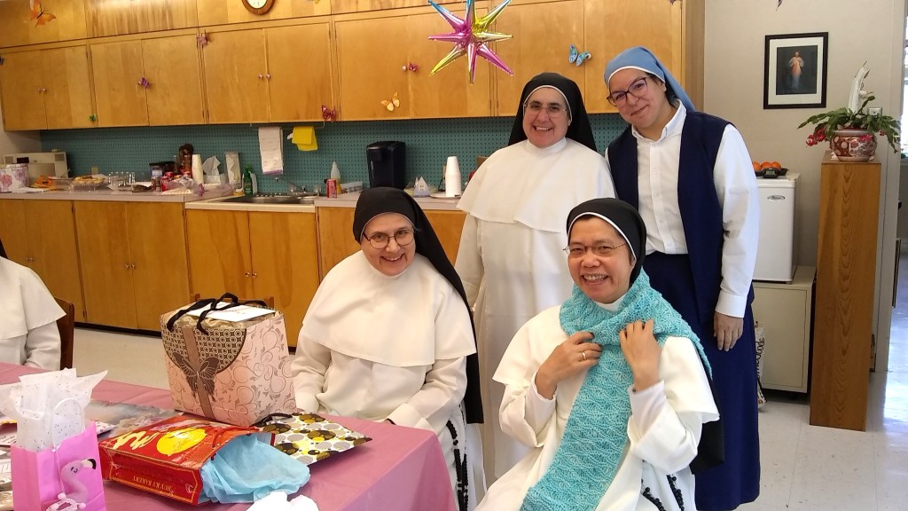 Sr. Mary Margaret, our “mother prioress”, and Sr. Mary Rose holding the card she designed for Sister. We each promised to offer three days of prayer for Sr. Mary Margaret’s intentions.