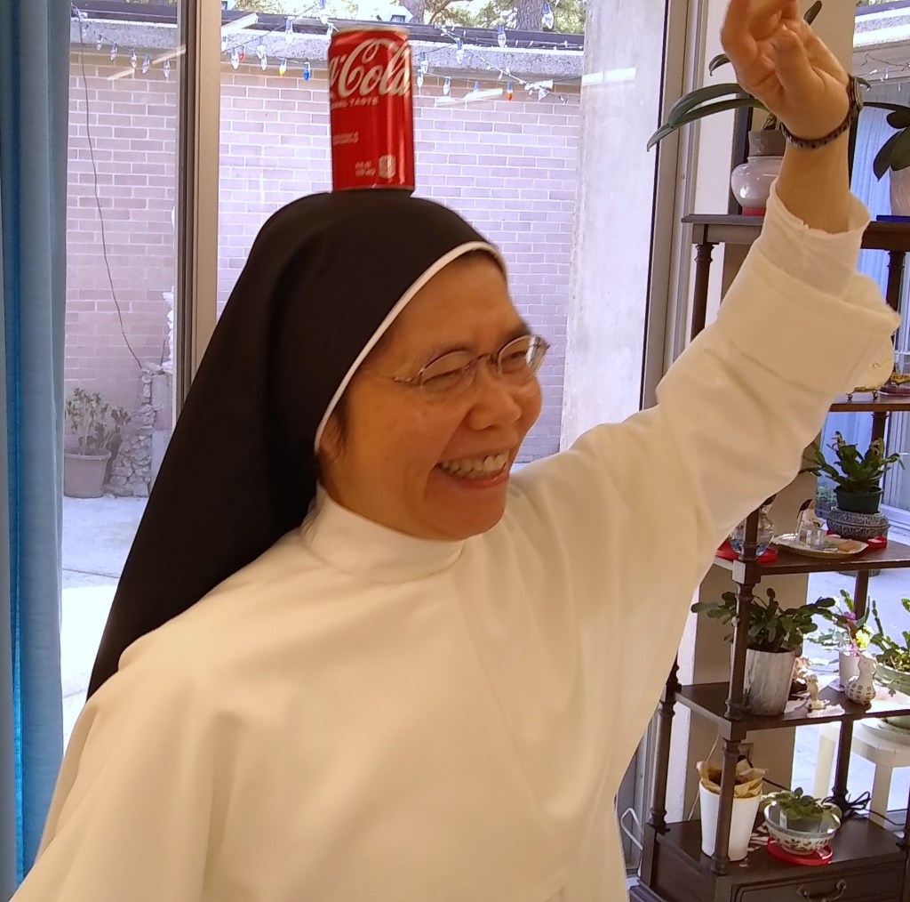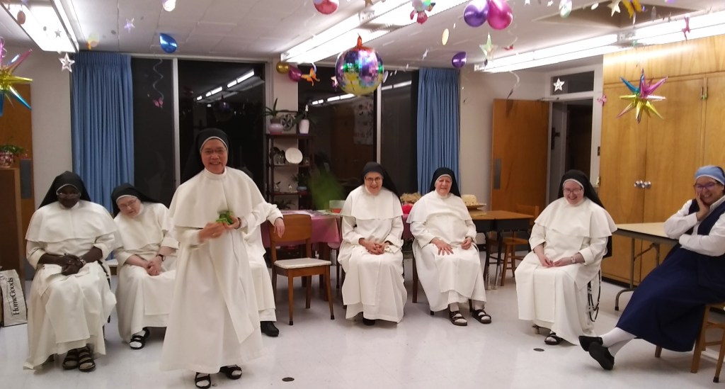 Sr. Maria, Sr. Miriam, Sr. Mary Giuse, Sr. Mary Jeremiah, and Sr. Marie Augustine–ready to play games!
