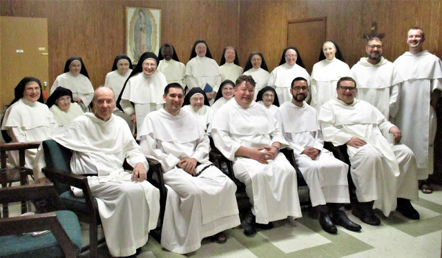 As you can see, we made quite a group! Most of our sisters were able to be present, and we had seven friars. Four are still in various stages of formation. Two of these four are novices–our own two novices from the province of St. Martin de Porres (aka the southern province)–and two student brothers, one from our province and one from the province of St. Albert the Great (aka the central province). They were accompanied by the novice master for our province and another priest, and our chaplain joined the fun.