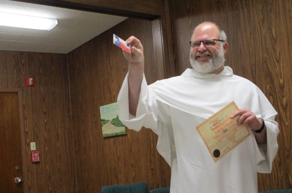 Just a couple of days after this momentous event, Fr. Reginald had to leave us and return to his home province of Toulouse in France. But before he left, we gave him a Texas-sized sendoff–including his own honorary Texas citizenship and a Texas passport so he can return someday.