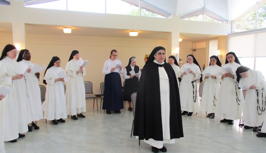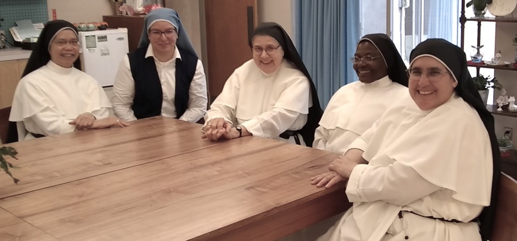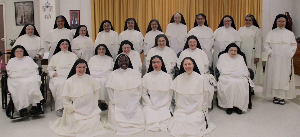 Wow! We’ve had a busy time recently, with Sr. Mary Margaret’s feast day celebration and several women visiting to learn more about our cloistered Dominican life on Lotus Lane! In fact, one of our aspirants graciously took this group photo of the community which we’d like to share with you all.