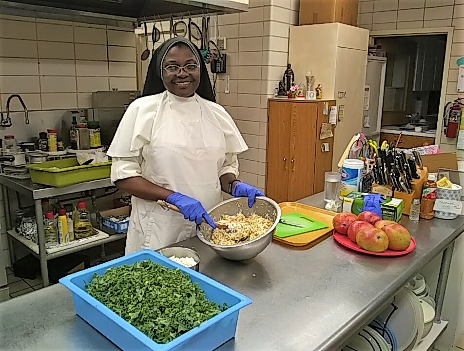 Sr. Marie Augustine busy in the kitchen preparing our dinner