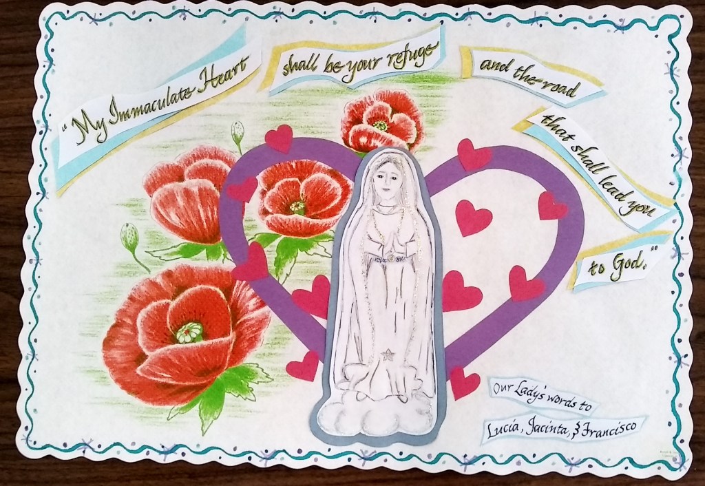 Sister’s place mat, with art by aspirant Michelle and lettering by Sr. Maria Goretti. When we saw it, some of us were sure her name would have something to do with Fatima! (It didn’t–she just has a devotion to Our Lady.)