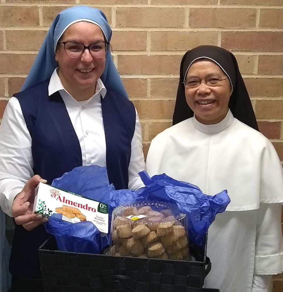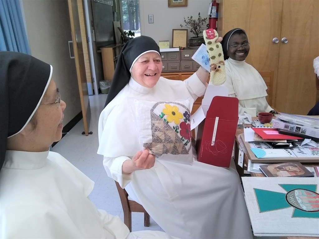 Michelle’s family doesn’t live too far from us, so they are able to come to visit once a month (with permission, of course). Here, we see Michelle and Sr. Mary Christine with some gifts her family brought on a recent visit.