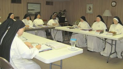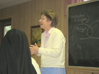 Sr. Mary of the Savior, O.P., from the Monastery of the Blessed Sacrament in Farmington Hills, MI is leading our seminar. This is a historic moment as it is the first time a Dominican nun has led a seminar for Dominican nuns at a study program in the United States!