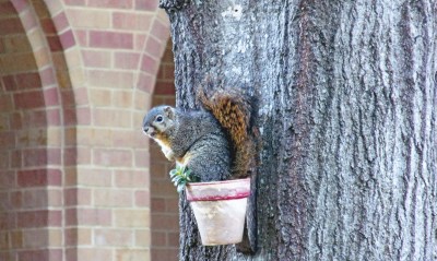 We don\’t have groundhogs in Lufkin–at least, not that we know of. We have lots of other native creatures, but if we do have groundhogs they\’ve never ventured onto the monastery grounds. So when we want to know whether spring is coming, or six more weeks of winter, we consult the squirrels!