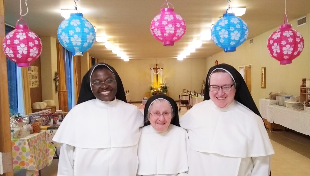 Sr. Miriam, Sr. Maria Rosario, and Sr. Maria Cabrini enjoy the Easter meal.