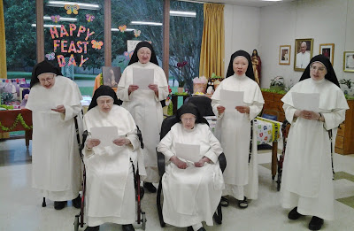 After gifts, we all ate a special meal in the community room. In the afternoon, we watched a montage of pictures of Sr. Mary Margaret’s life, especially her life in the monastery.