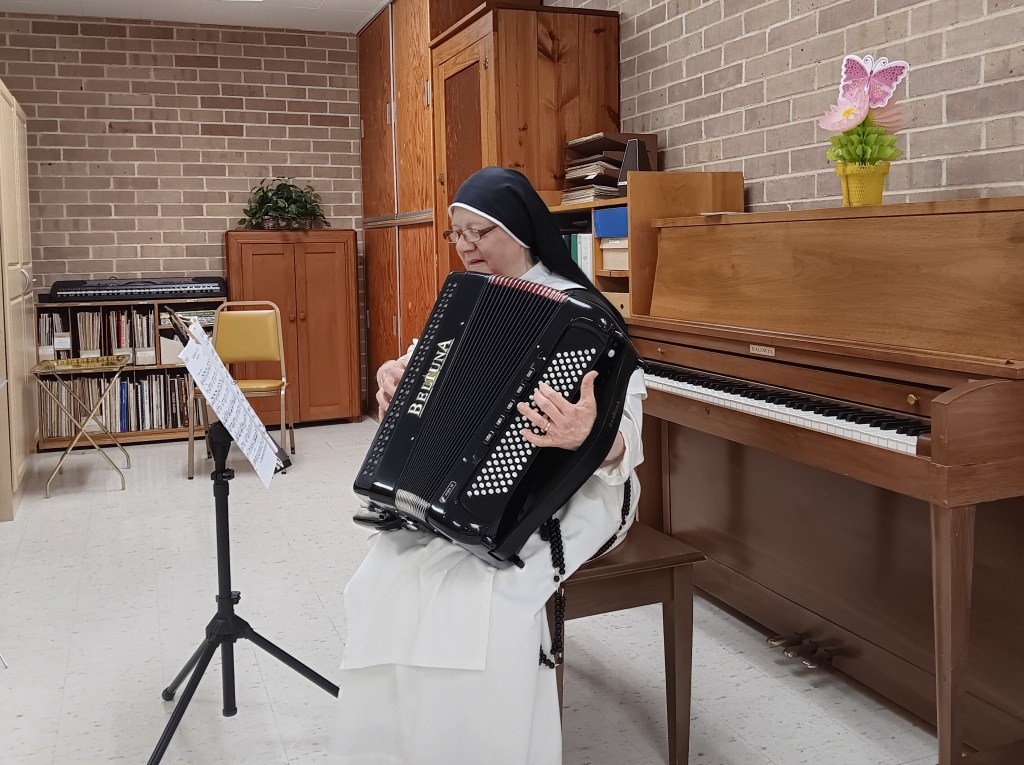 The morning’s program was a funny skit about Sr. Mary Margaret’s life before she entered the convent, with the nuns playing her and members of her family.