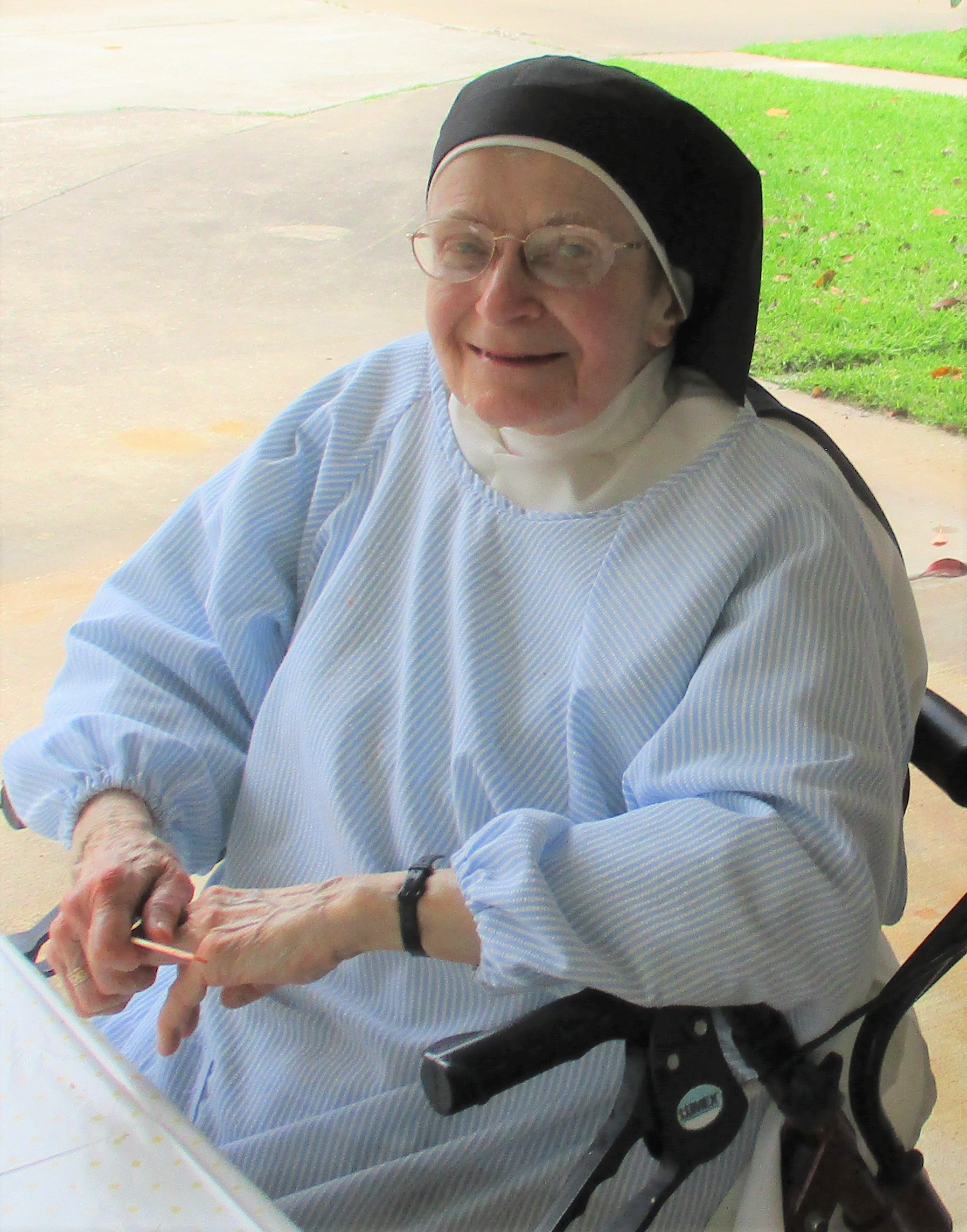 Sr. Mary Margaret enjoys some Mother’s Day gifts.