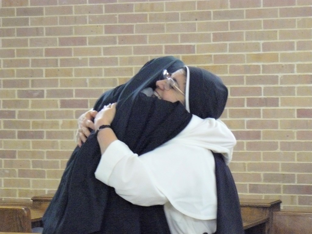Sr. Mary Pauline, Sr. Mary Christine, Sr. Marie Augustine, Sarah, Michelle, and Sr. Maria Goretti